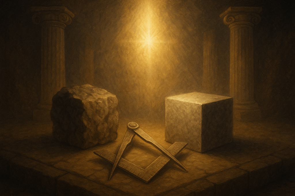 - La Pietra Grezza e la Pietra Cubica: due simboli centrali che incarnano il percorso di trasformazione interiore del Massone. La Pietra Grezza è un blocco di pietra informe, non lavorato: essa rappresenta l’uomo allo stato profano, imperfetto, non ancora illuminato dalla conoscenza. In questa pietra “irregolare” sono metaforicamente racchiusi i vizi, le passioni, le invidie e l’intolleranza che rendono l’individuo inadatto alla costruzione del Tempio interiore. Il lavoro del Massone consiste nello “sgrossare” gradualmente questa pietra, eliminando le asperità caratteriali e le impurità morali. Gli strumenti simbolici per farlo sono la squadra e il compasso (uniti al martello e scalpello), ovvero l’applicazione costante della disciplina etica e della introspezione sapiente. Col tempo e l’impegno, la pietra informe si trasforma nella Pietra Cubica (o pietra levigata): un blocco regolare, dalle facce perfettamente quadrate e levigate. La Pietra Cubica simboleggia la personalità perfezionata, l’uomo che ha vinto i propri vizi e raggiunto l’armonia interiore. Essa esprime la compiuta elevazione spirituale e la realizzazione dell’Essere in pienezza. In termini psicologici, il passaggio da pietra grezza a pietra cubica equivale ad un processo di individuazione e miglioramento di sé: lavorando su di sé quotidianamente – “scavando prigioni ai vizi” e coltivando le virtù – l’iniziato acquisisce padronanza sulle proprie debolezze e libera il proprio potenziale latente, così come lo scultore libera la statua dal blocco grezzo di marmo. Non a caso Michelangelo affermava che “ogni blocco di pietra contiene un’infinità di forme umane: spetta allo scultore saperle liberare”. Il Massone diviene scultore di sé stesso. In alcune cerimonie scozzesi si parla della pietra cubica che “suda sangue e acqua” prima di farsi Rosa Mistica, alludendo alle prove dolorose e allo sforzo incessante necessari per purificarsi, fino al conseguimento finale della Luce interiore. Questo linguaggio iniziatico sottolinea la dimensione quasi “alchemica” della trasformazione spirituale massonica: il piombo delle imperfezioni umane è trasmutato in oro di saggezza e virtù.