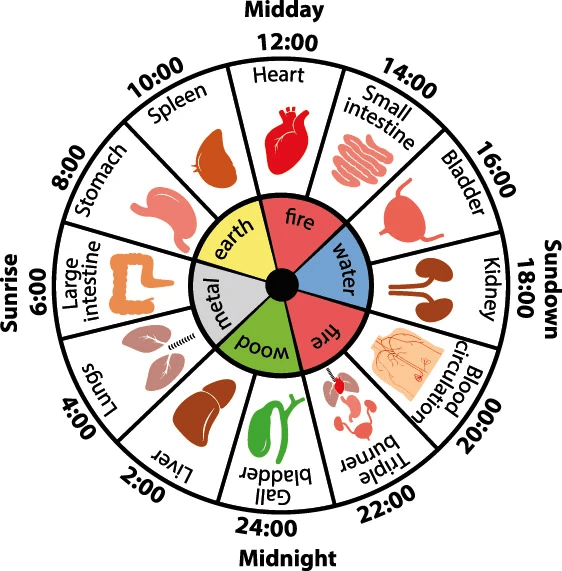 La Medicina Cinese sostiene l’esistenza di un Orologio degli Organi, un ciclo energetico di 24 ore in cui ogni organo del nostro corpo raggiunge il massimo della funzionalità in una finestra di circa due ore. In ogni intervallo bi-orario, quell’organo risulterebbe più attivo non solo sul piano fisico ma anche su quello emotivo, perché secondo la MTC a ogni organo è associata un’emozione predominante. Ad esempio, il fegato è collegato alla rabbia, i polmoni alla tristezza, i reni alla paura, il cuore alla gioia, e così via. Di conseguenza, svegliarsi sempre alla stessa ora durante la notte, secondo la MTC, indica un possibile squilibrio nell’organo corrispondente a quell’orario e/o nelle emozioni ad esso collegate.