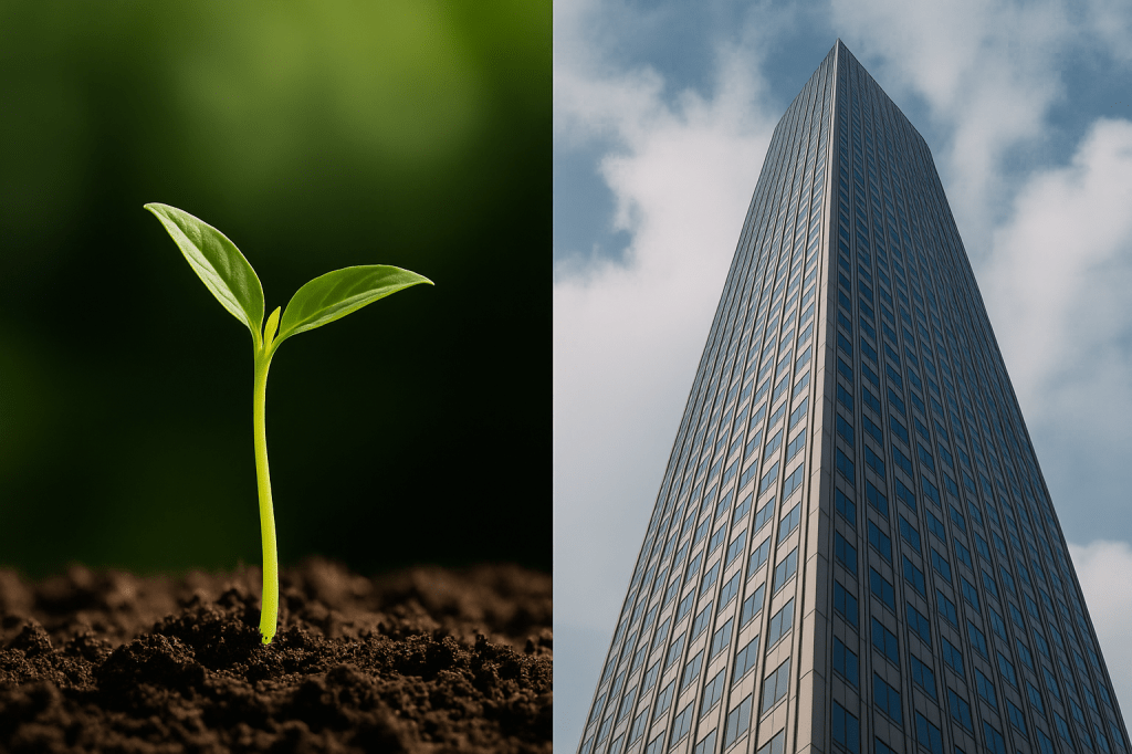 Immagina un seme e un grattacielo. Entrambi puntano verso l’alto. Entrambi “crescono” in verticale. Ma la loro verticalità nasce da logiche opposte.
