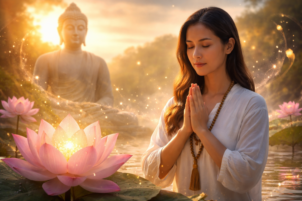 Uno dei passaggi centrali (sempre in fonti Soka Gakkai) è il simbolo del loto: cresce nel fango ma resta puro; e soprattutto, a differenza di molte piante, produce fiore e frutto insieme. Questo viene usato per illustrare il principio della simultaneità di causa ed effetto: non devi aspettare di “diventare perfetto in futuro” per attingere a uno stato vitale più alto; puoi far emergere quella qualità adesso, dentro le circostanze di adesso.